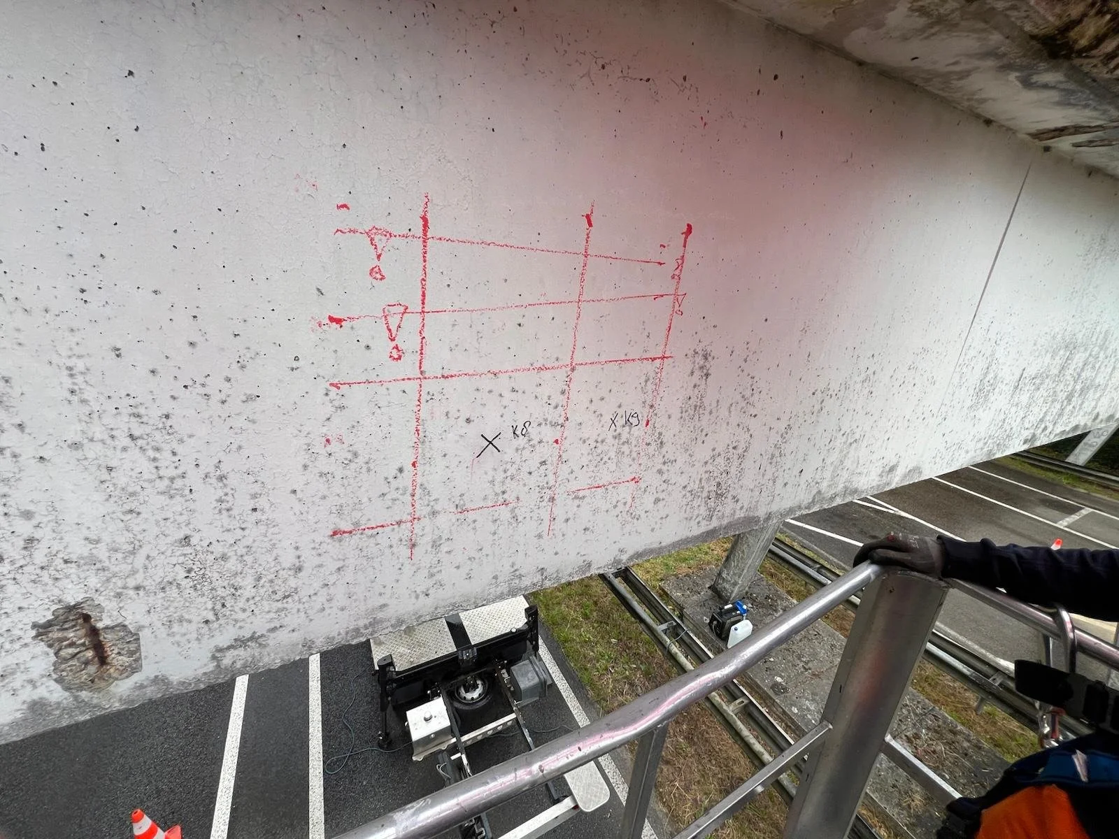 Niet destructief onderzoek: Pachometingen (dekking), GPR-metingen (locatie voorspanning), & potentiaalmetingen.